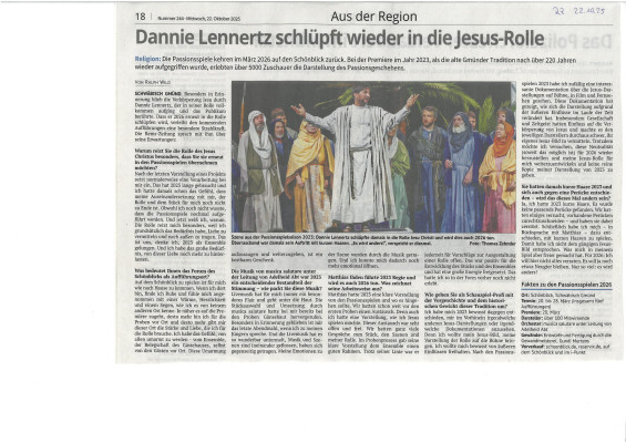 Nach dem großen Erfolg im Jahr 2023 mit fünf ausverkauften Vorstellungen kehren die Passionsspiele im März 2026 nach Schwäbisch Gmünd zurück.